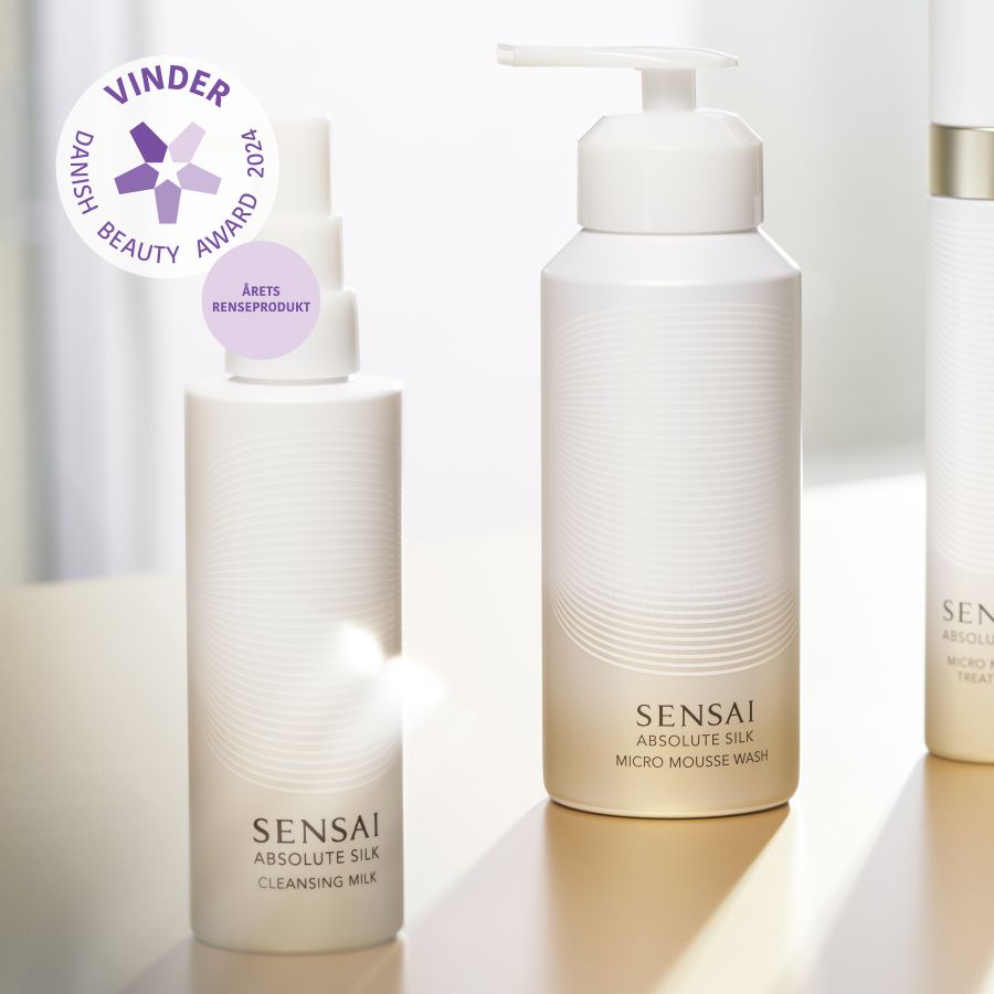 Vi er stolte af at Sensai's Absolute Silk Cleansing Milk og Absolute Silk Micro Mousse Wash vandt titlen som "Årets Renseprodukt" til Danish Beauty Award 2024.