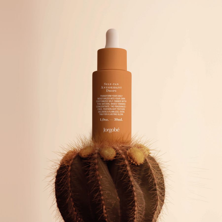 Self-Tan Antioxidant Drops fra Jorgobé forvandler din ansigtscreme til en selvbruner, der giver en solkysset glød.
