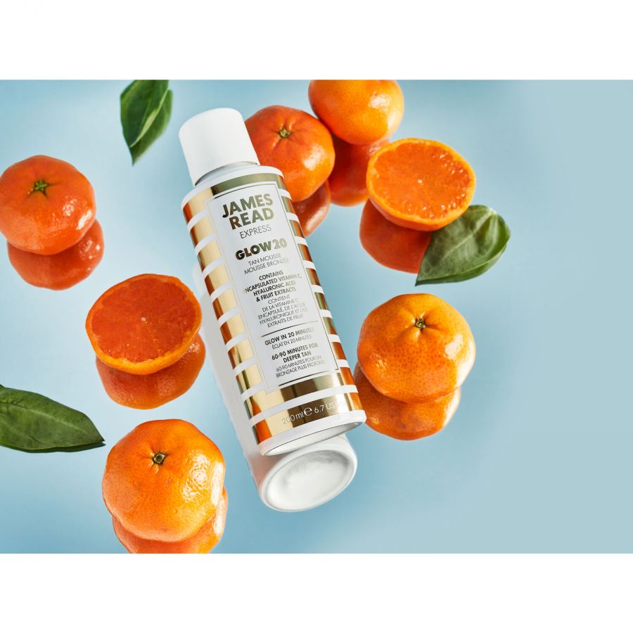 Glow20 Express Tan Mousse Body er en farvet selvbruner-mousse, som giver et solkysset look på kun 20 minutter! Formlen indeholder også hudplejende ingredienser og vitaminer, som har en opstrammende, fugtgivende og udglattende effekt. Lad virke i 20-90 minutter, afhængigt af hvor intenst et resultat du ønsker. Selvbruner-effekten holder i op til 5 dage.